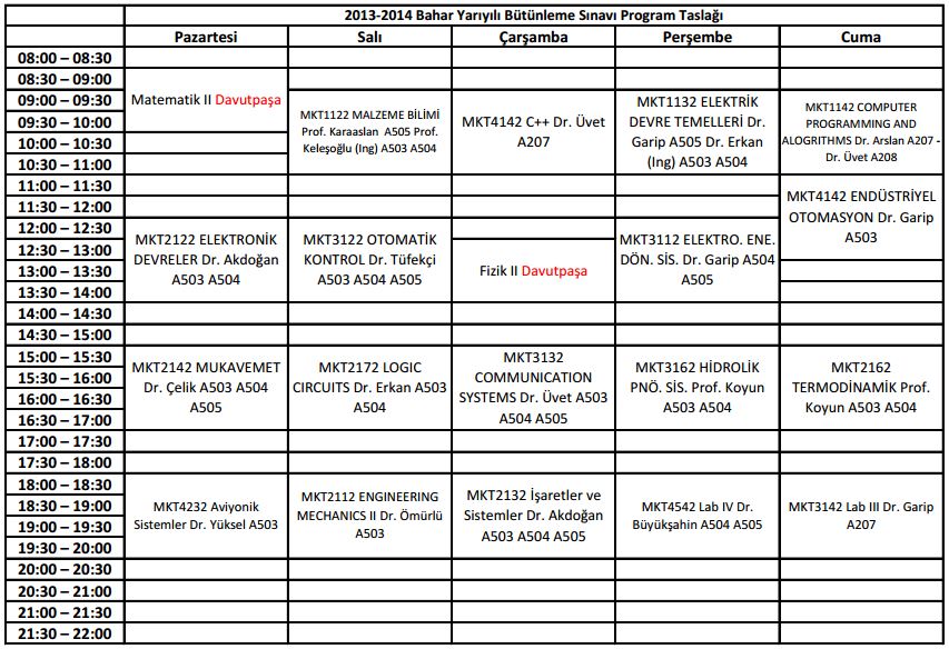 Mekatronik Mühendisliği tarafından verilen dersler dışındaki tüm derslerin (temel dersler, havuz dersleri veya seçmeli dersler) sınav bilgilerine ilgili bölümlerin sayfalarından ulaşabilirsiniz.
