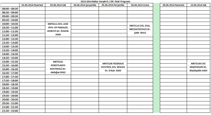 2013 2014 Bahar Yarıyılı Lisansüstü Final Sınav Programı