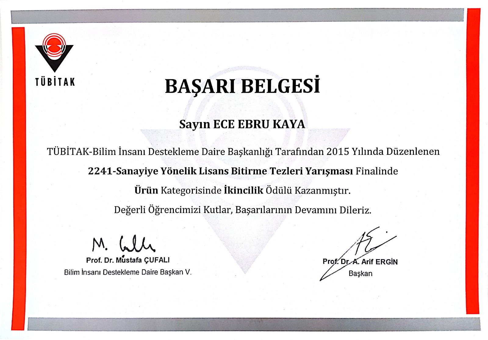 Bölümümüz öğretim üyelerinden Doç. Dr. Vasfi Emre Ömürlü danışmanlığında bölümümüz öğrencilerinden Hakan Altuntaş ve Ece Ebru Kaya tarafından yürütülen "SİMÜLATÖRLERDE ALGI YÖNETİMİ AMACIYLA PARALEL MEKANİZMALARIN KONUM KONTROLÜ" konulu proje TÜBİTAK 2241 B "Sanayi Odaklı Lisans Bitirme Proje Yarışması" kapsamında 2.lik ödülünü kazanmış bulunmaktadırlar.