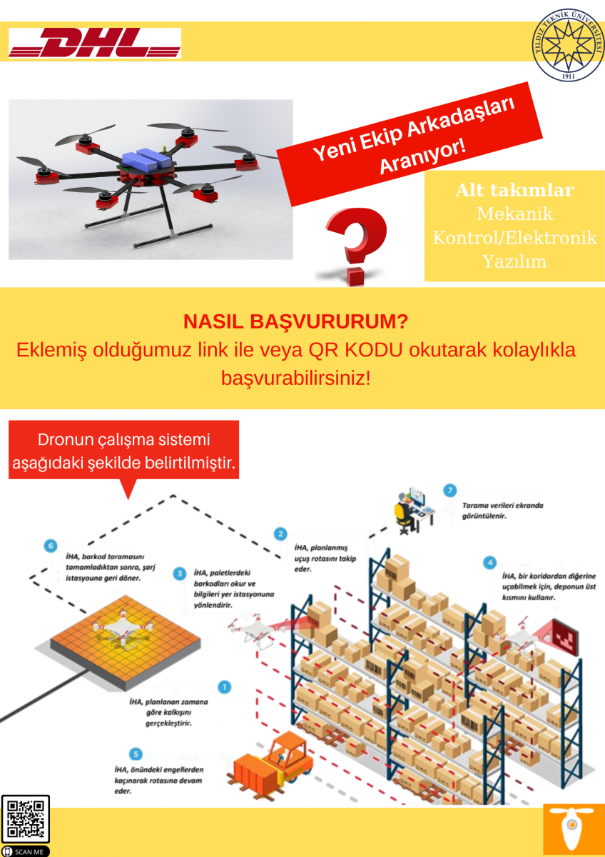 İHA’ mız depolarda ürünlerin durumlarını ve veri tabanındaki adet bilgilerini kontrol etmek amacıyla kullanılacaktır. Uzun vadede depolarda sayımlar için ayrılan süre kısalacak, sayımlar otonom hale gelecek, sayım esnasında kullanılan insan gücü azalıp iş sağlığı/güvenliğini tehdit eden durumlar ortadan kalkacaktır. Sen de bu projenin bir parçası olmak istiyorsan hemen başvur!