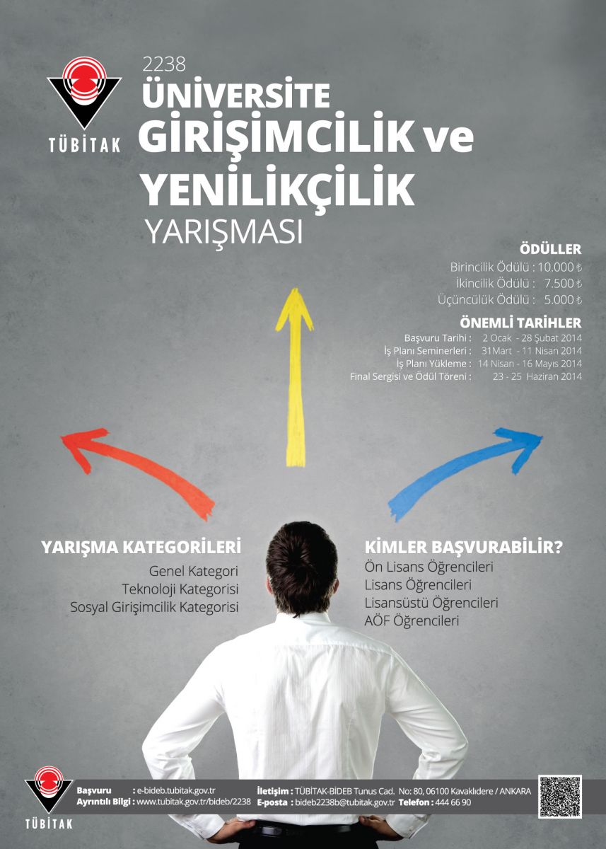 TUBITAK Bilim Insani Destekleme Daire Baskanligi tarafindan 2014 yilinda duzenlenecek olan 2238- Universite Girisimcilik ve Yenilikcilik Yarismasi düzenlenecektir.