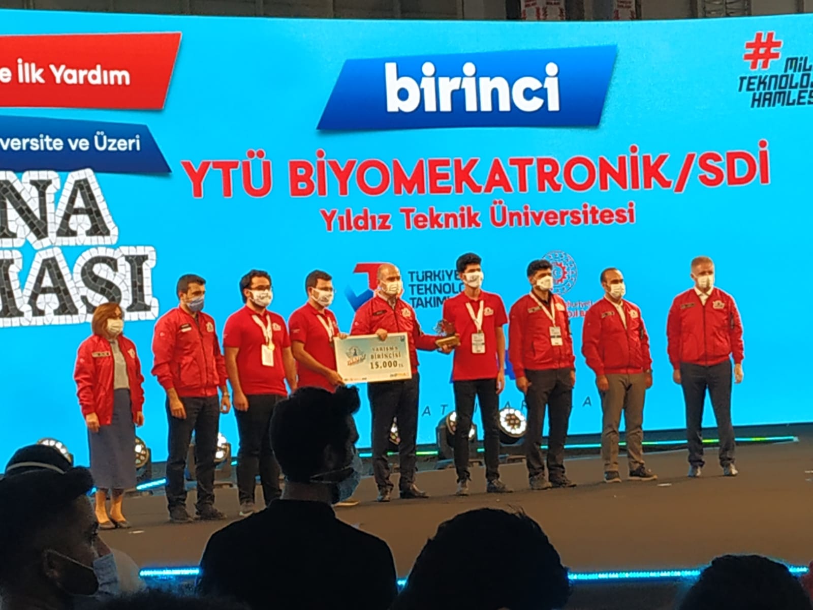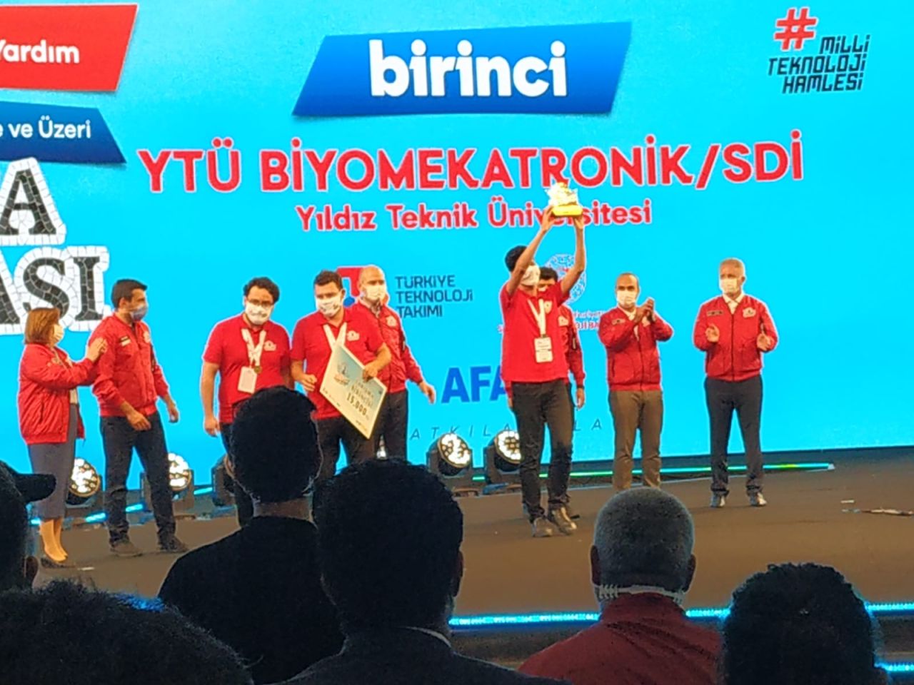 Teknofest 2020'ye YTÜ-BİYOMEKATRONİK takım ismi ile katılan, Prof. Dr. Erhan AKDOĞAN danışmanlığındaki bölümümüz Biyomekatronik Araştırma Laboratuarı projelerinden "Sabit Üst Uzuv Dış İskelet Rehabilitasyon Robotu", Teknofest 2020 İnsanlık Yararına Teknolojiler - Sağlık Kategorisinde birincilik ödülünü kazandı. Kendilerini kutlar, başarılarının devamını dileriz.