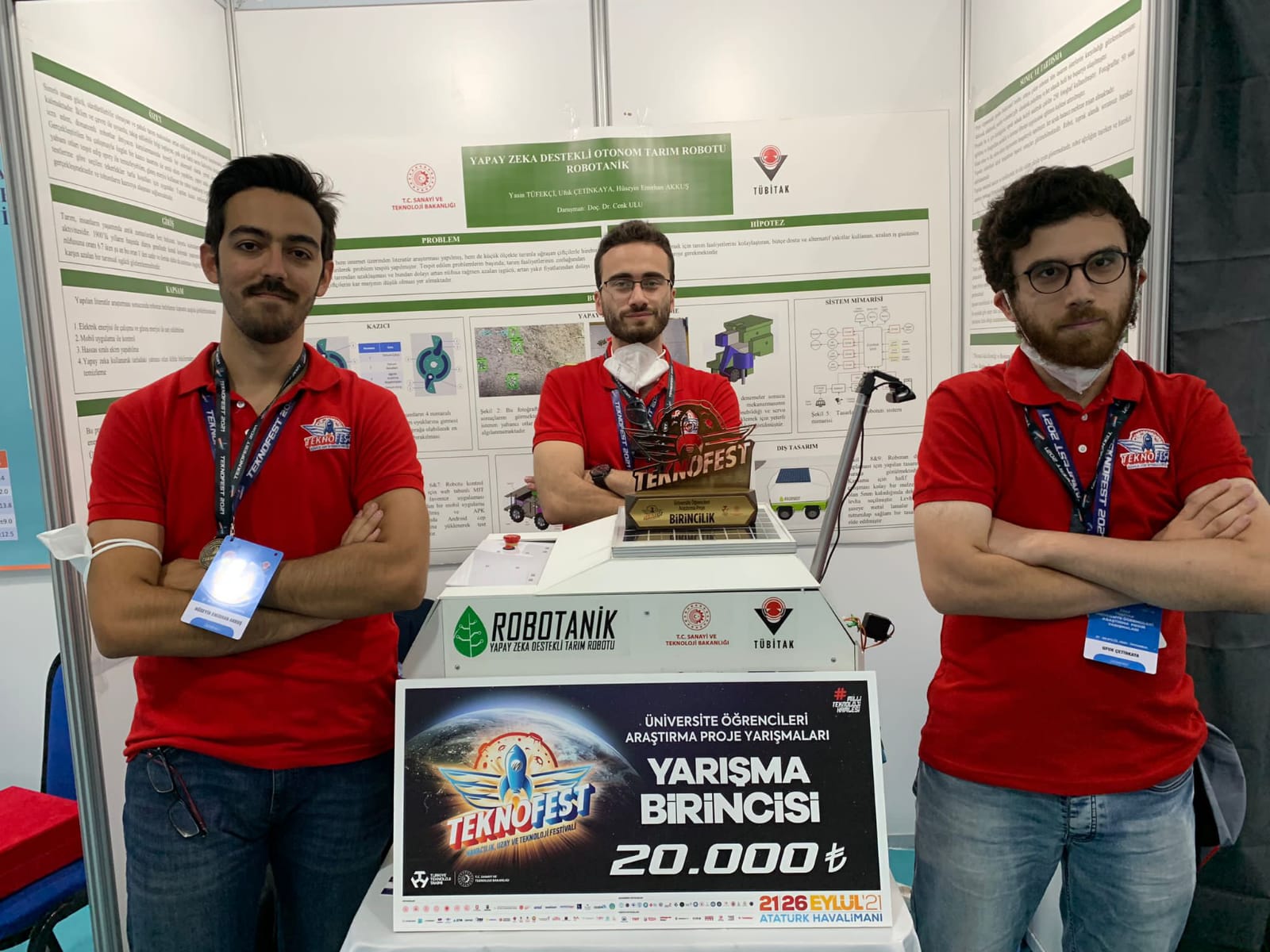 Yıldız Teknik Üniversitesi Mekatronik Mühendisliği Bölümü öğrencileri Hüseyin Emirhan Akkuş, Ufuk Çetinkaya ve Yasin Tüfekçi, Doç. Dr. Cenk Ulu danışmanlığında Robotanik - Yapay Zeka Destekli Otonom Tarım Robotu projesiyle Tübitak 2242 Üniversite Öğrencileri Araştırma Projeleri Yarışması Gıda ve Tarım kategorisinde birincilik ödülünü almıştır. Danışman hocamızı, takım kurucusu Cihan Yurtsever'i ve öğrencilerimizi kutlar başarılarının devamını dileriz.